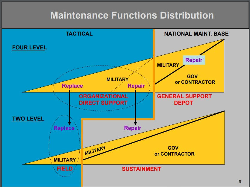 As long as there were enough modules/sub-systems for "plug & play" to cover usage, 2-level maintenance works.