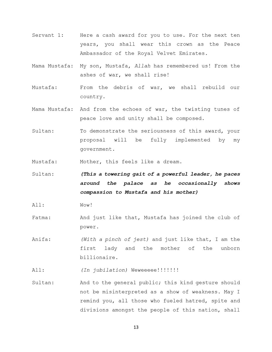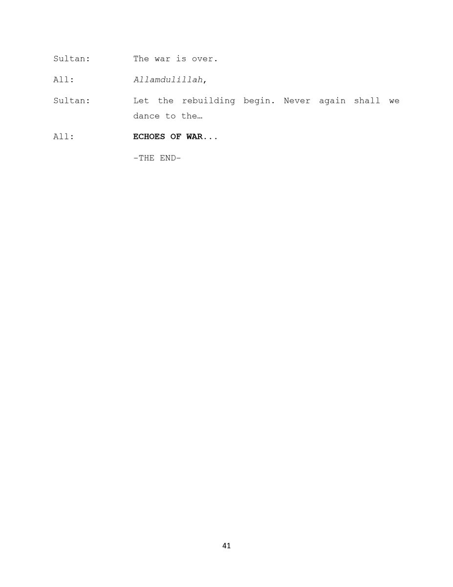 Echoes of War is a masterpiece that depicts the best that art can offer. It mirrors our society as is currently and as such, this play deserves its rightful place and honour.