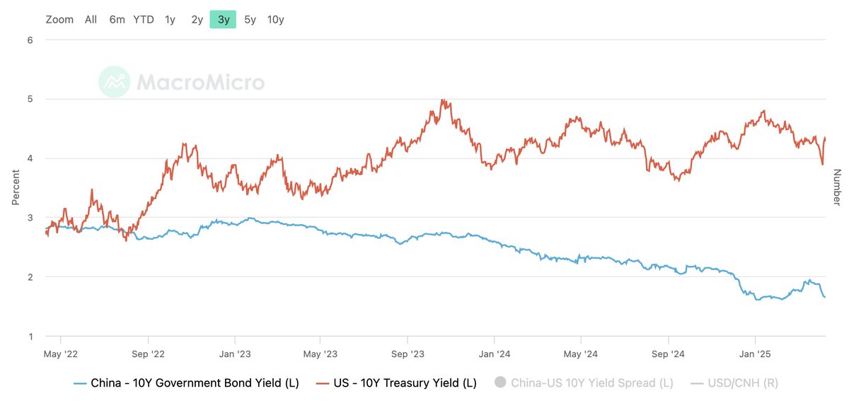 Strangers are willing to lend to China at a far lower yield than the US, i.e. the bond market is saying US is a bigger credit risk.