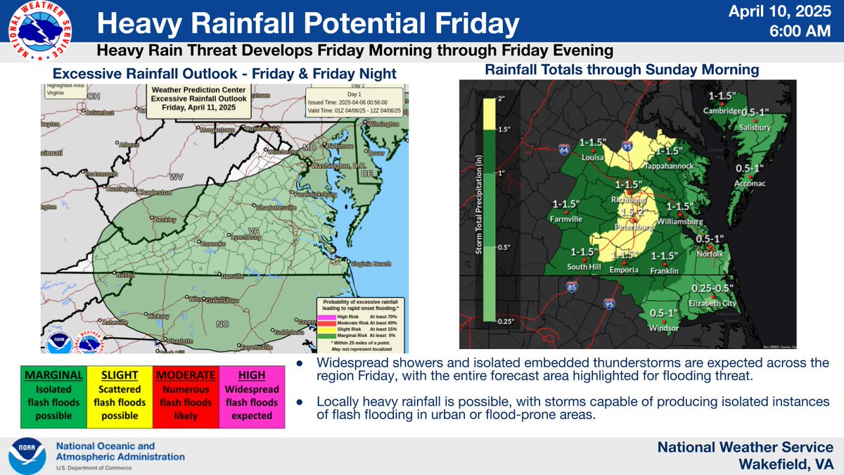 Additionally, there is a marginal flooding rain threat Friday across the entire forecast area as this low moves through. Rainfall totals of 1-2" with localized higher amounts are possible, which could be capable of producing isolated flash-flooding in flood-prone or urban areas.
