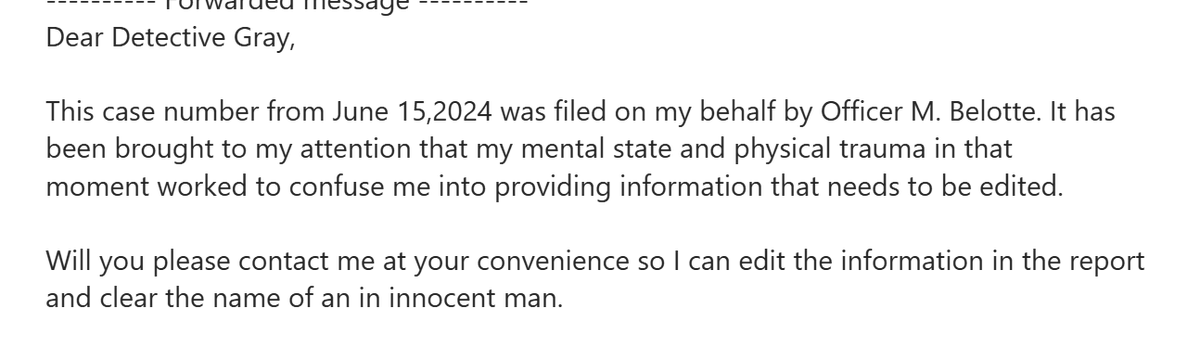 After weeks of calling, I finally manage to get in touch with someone at this police department. I lay out all of the evidence. I ask them to please dismiss the warrant.