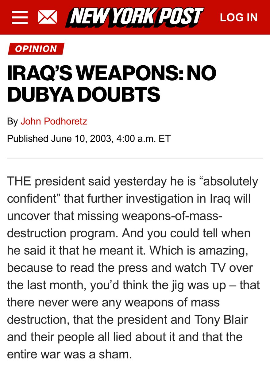 Years after everyone with a brain knew there no WMDs in Iraq, John Podhoretz concluded that the real mistake was not indiscriminately killing every Muslim male in the country.