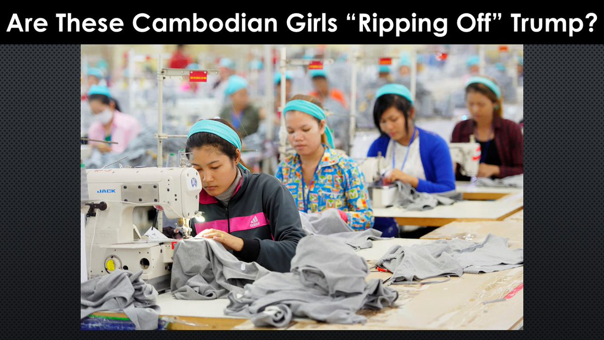 Calvin Klein generously pays her $1 an hour, but she never buys any iPhones or Tesla.”