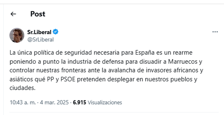 🔎Un discurso de odio, articulado por V🤮x, para vincular delincuencia e inmigración, generar miedo y provocar una respuesta violenta ante una amenaza inexistente, con la única intención de recoger votos de los grupúsculos "nancis" que pululan por nuestro país. 👎