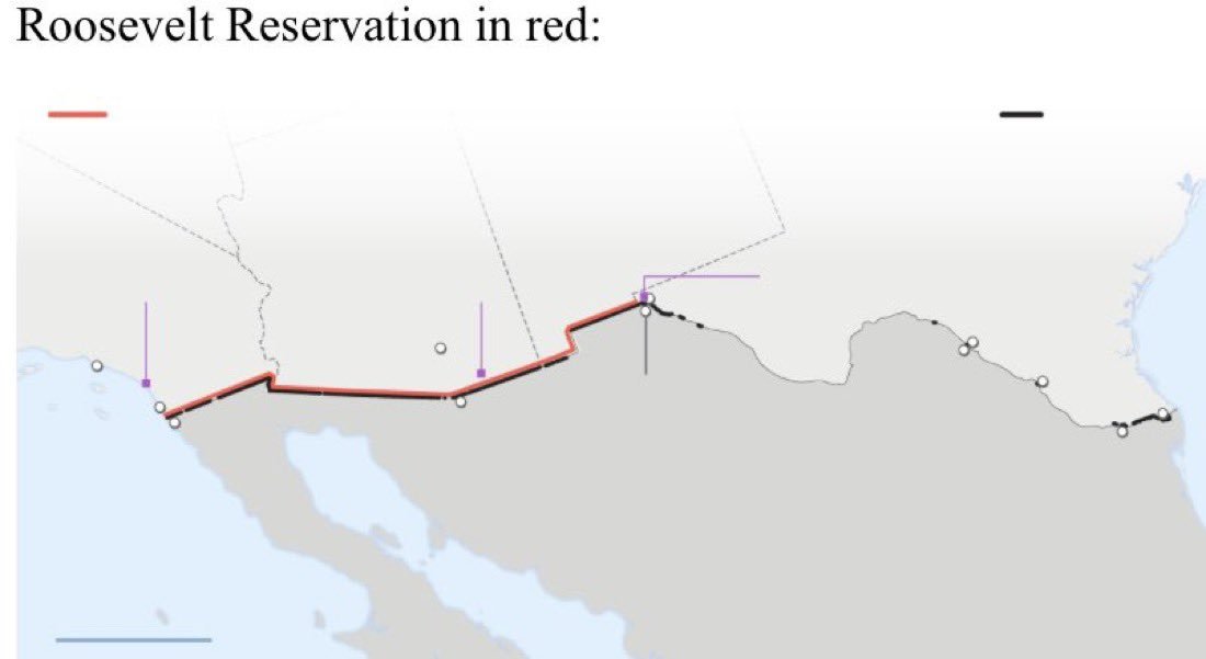 3/ CRUCIAL DETAIL: This isn't just some land grab. Trump's using the Roosevelt Reservation - land that Teddy Roosevelt SPECIFICALLY set aside in 1907 for border security.