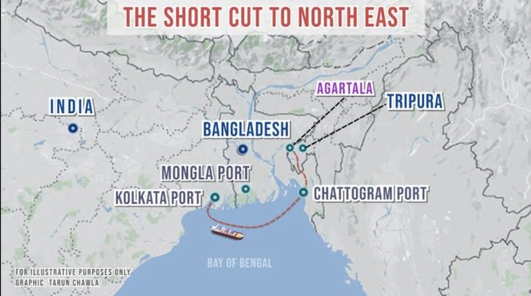 2️⃣ Bangladesh’s seaports (like Chittagong and Mongla) are not viable for exports to landlocked neighbors.
