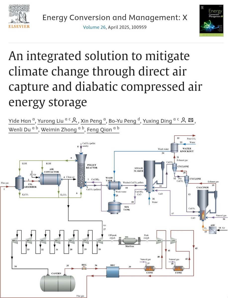 2/ Led by researchers at East China University of Science & Technology and Tongji University, the system innovatively combines solvent-based CO₂ capture for both atmospheric and point-source emissions with energy storage.