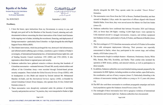 "The Government of Sudan has just sent a 6 page letter to the UN Security Council (and 50+ page annex) presenting their evidence