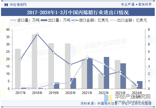 See how quickly China went from being a huge importer of Acrylonitrile to a net exporter.