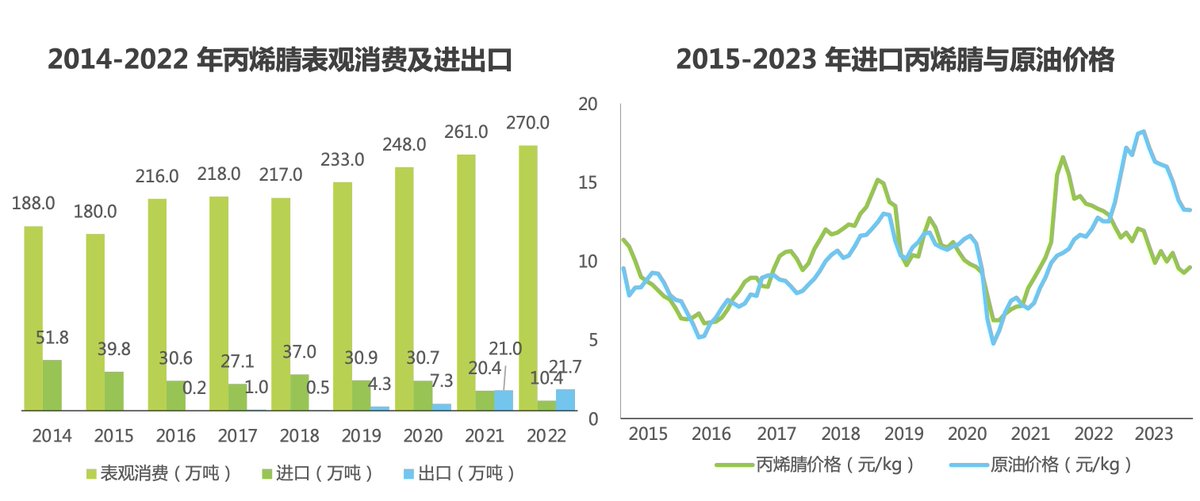See demand of Acrylonitrile went up 50% from 2015 to 2022 & domestic petrochem production went through the roof during this time while China's import of crude sky rocketed.