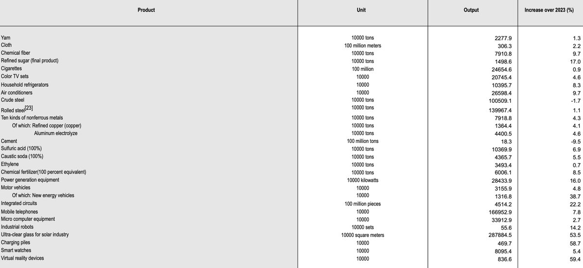 After dominating the raw materials, the move toward higher end materials like chemical fiber, Ti & ultra clear glass as well as ICs, batteries, robots, eMotor, power generation & NEVs is quite clear based on China's 2024 industrial production report.