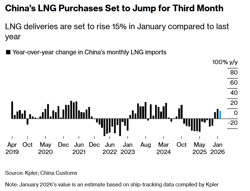 More importantly, China's growing renewable build out means it simply does not need that much hydrocarbon. Coal power in 2025 dropped to just 51% of overall while non-fossil fuel reached 43%.