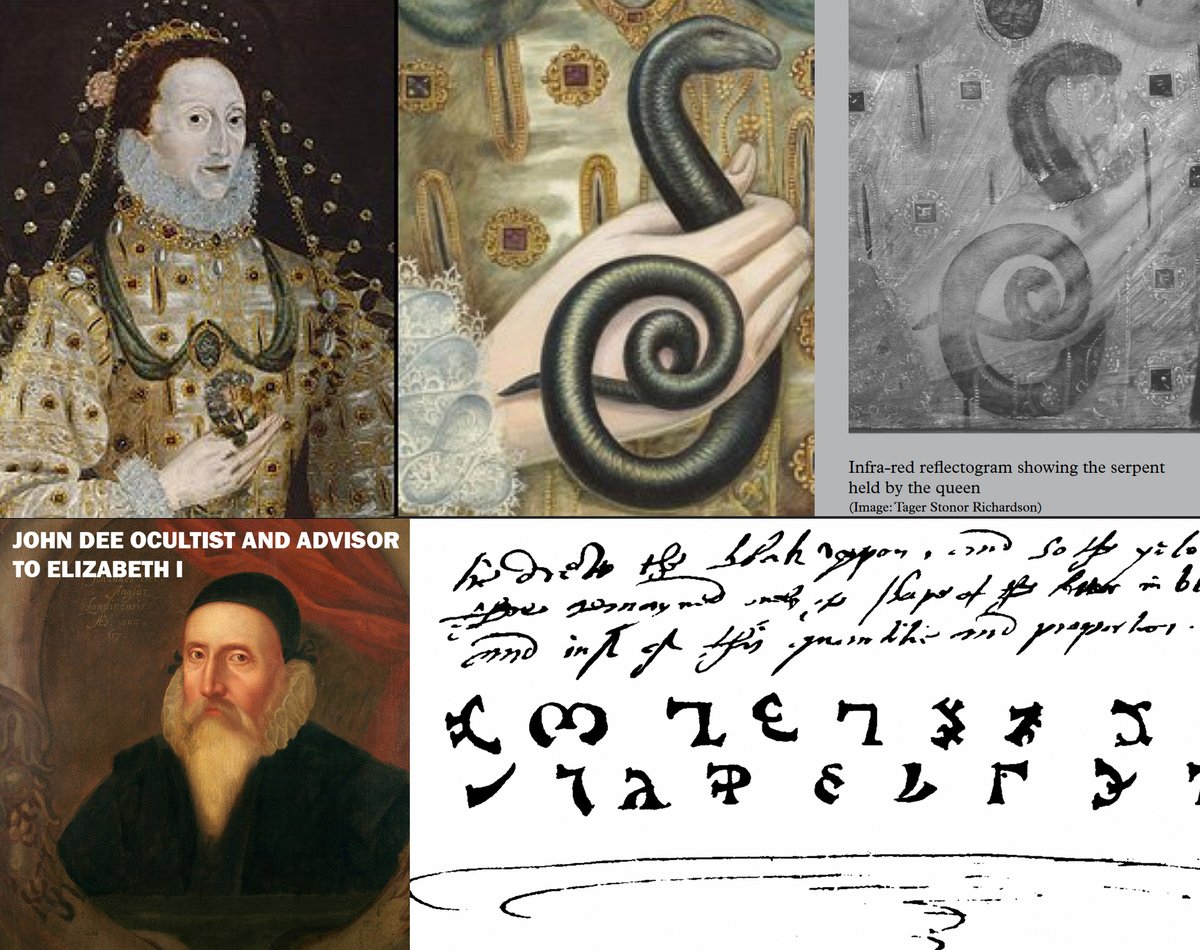 There is a famous portrait of Queen Elizabeth I holding the serpent of wisdom in her hands. When the serpent became associated with the devil and esoteric knowledge was once again hidden, the serpent was repainted with flowers. (4/9)🧵