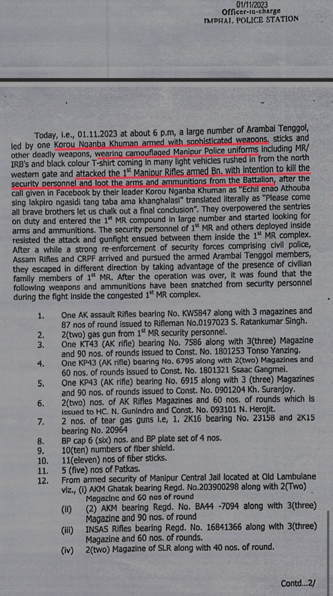 1)@NIA_India for Attacking 1st MR on 1/11/23, armed with sophisticated weapons in MP uniforms with intention to kill security forces & loot weapons from arm cotes.
