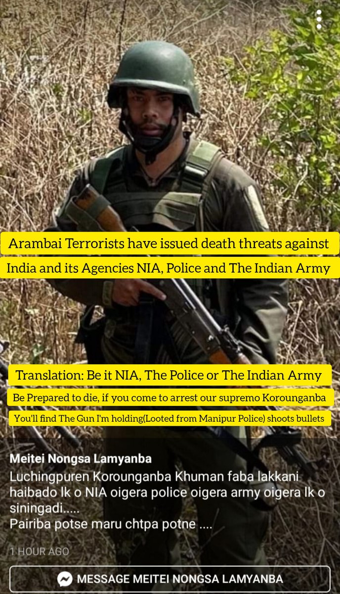 1️⃣Against the back drop of Manipur Governor's Meet with Terrorists,here are🔑operatives of AT with outstanding @NIA_India arrest warrant on terror charges,Attempt to murder,who've declared war against🇮🇳, threatened suicide bombings, vowed to break🇮🇳into pieces,& kill🇮🇳Army.