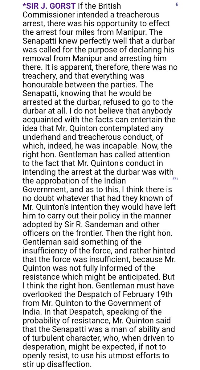 1️⃣2️⃣Tikendrajit's refusal to heed the durbar summons twice prompted Grimwood & Quinton to move forward with his arrest which went awry as violence erupted. Quinton sought truce & he along with Grimson went inside Kangla,unarmed & unescorted to discuss about terms of a Ceasefire.