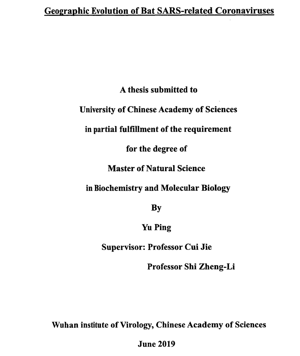 Cui's student, Yu Ping, documented the discovery of RaTG13 (Ra4991) in her June, 2019 master's thesis, but omitted the RBD from an alignment. It clearly had been sequenced by then.