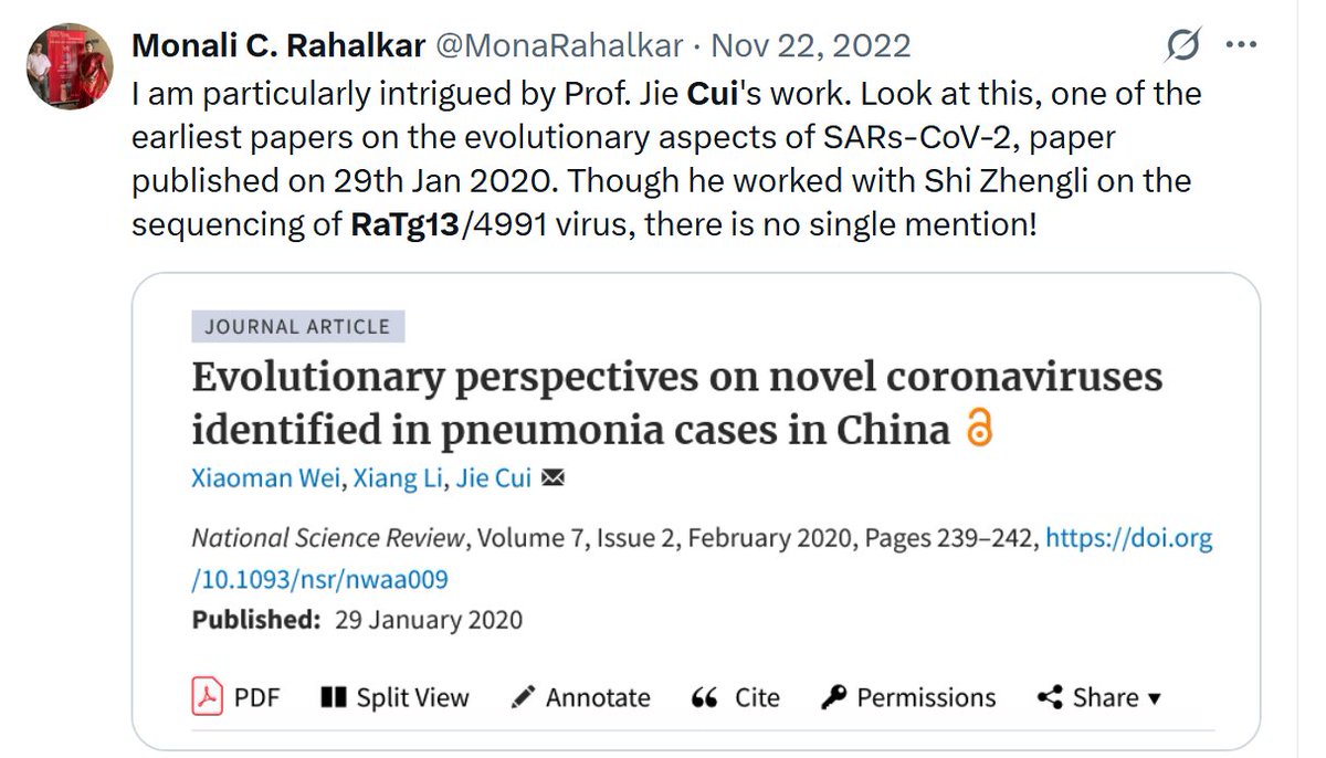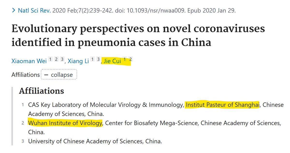 Neither Cui or Yu are named on the Feb 2020 paper describing RaTG13.
