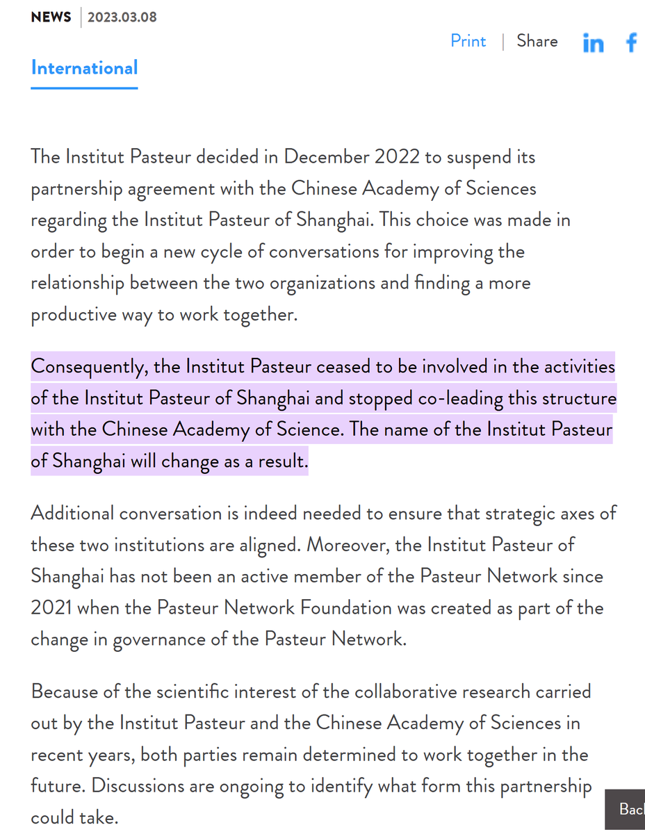 In 2023, Pasteur announced its divorce from CAS (backdating its separation to an organizational reshuffle in July 2021). The statement recognizes Paris had little control over its Chinese outpost.