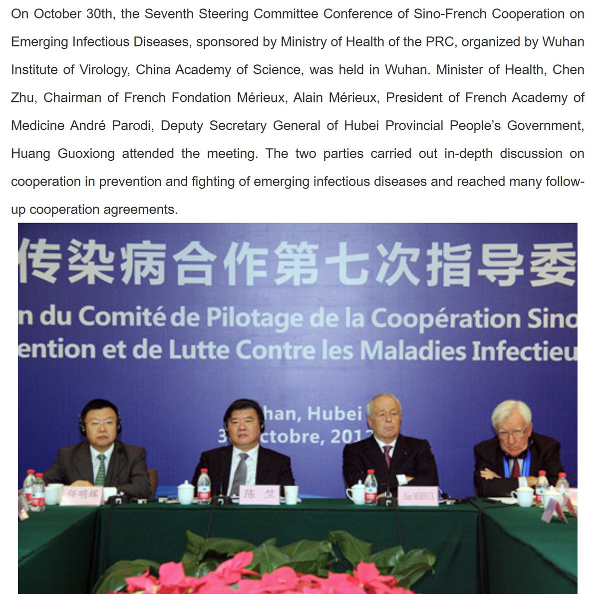 Francophile Chen did his PhD/postdoc there. Later, with French businessman Alain Merieux, he drove Sino-French cooperation on the Wuhan lab.