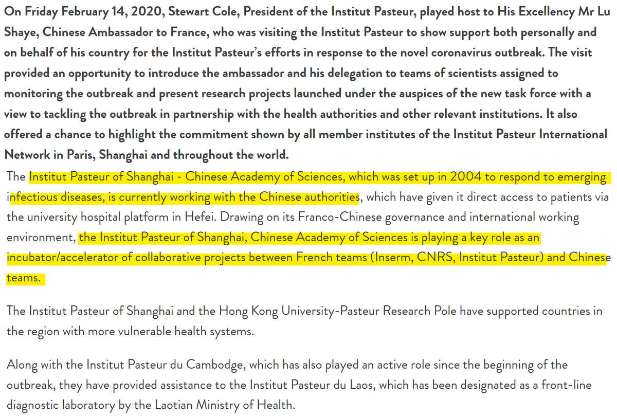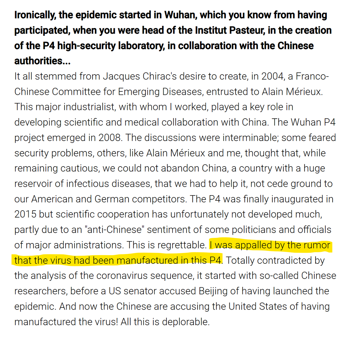 Former Institut Pasteur/INSERM/Merieux director and WIV advisory board member, Christian Bréchot, was defiant - appalled at the "rumors" and railing against "anti-Chinese sentiment".