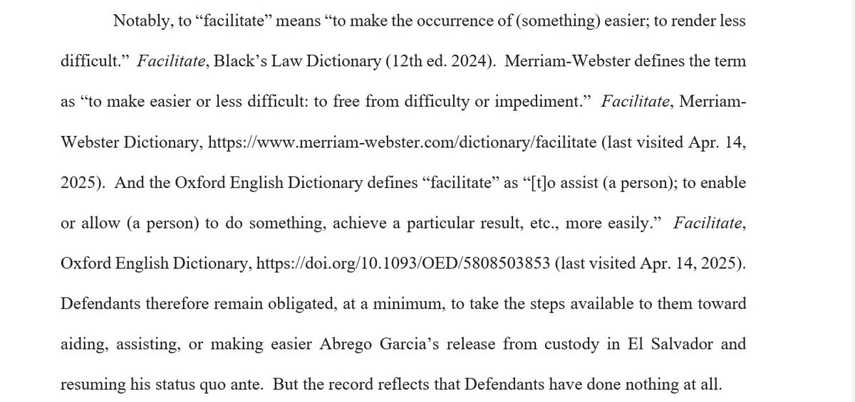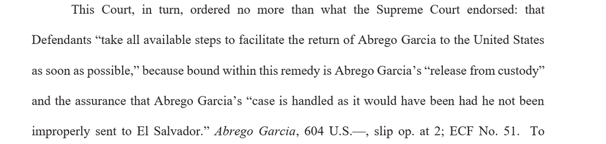 5/ Judge Xinis is expressly claiming the Supreme Court endorsed her ordering Defendants “take all available steps to facilitate the return of Abrego Garcia to the United States as soon as possible." It did not.