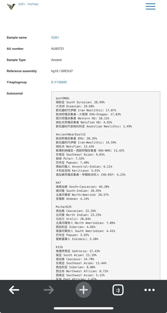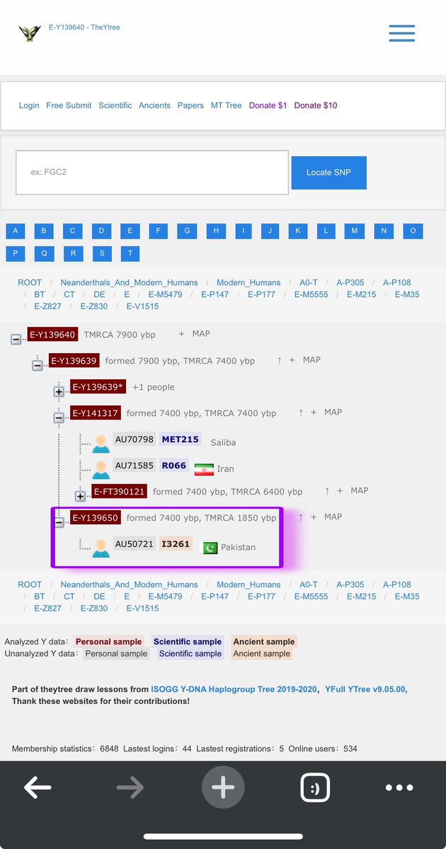 -ضمن المشجرة الصينية توجد رفاة I3261 في باكستان 🇵🇰 من حوالي ٣٠٠٠ سنة والتي يضعها تحت E-Y139650 الذي هو تحت التحور PH1818 من السلالة E-V1515