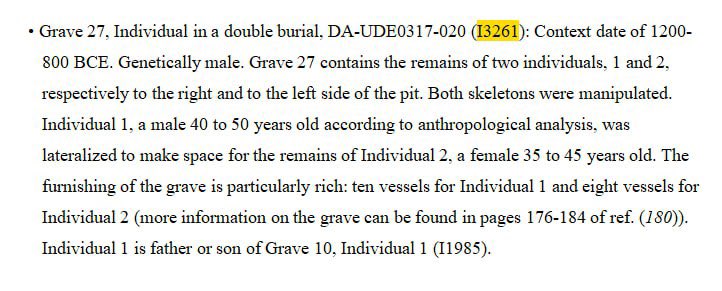 كما انها تذكر ان هناك صلة قرابة بين الفرد١ في مقبرة ٢٧ و الفرد ١ في المقبرة ١٠ من الدرجة الاولى اما ابا او ابنا له