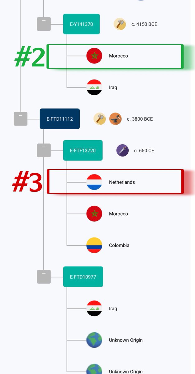3/ الفاميلي تري يظهر أن العينة تقع على التحور E-FT13720، وتتكتل جينيًا مع شخص هولندي (يهودي أشكنازي) و شخص مغربي في سلف مشترك يعود إلى 650م فقط، وهو ما يثير تساؤلات حول أصل هذه العينة