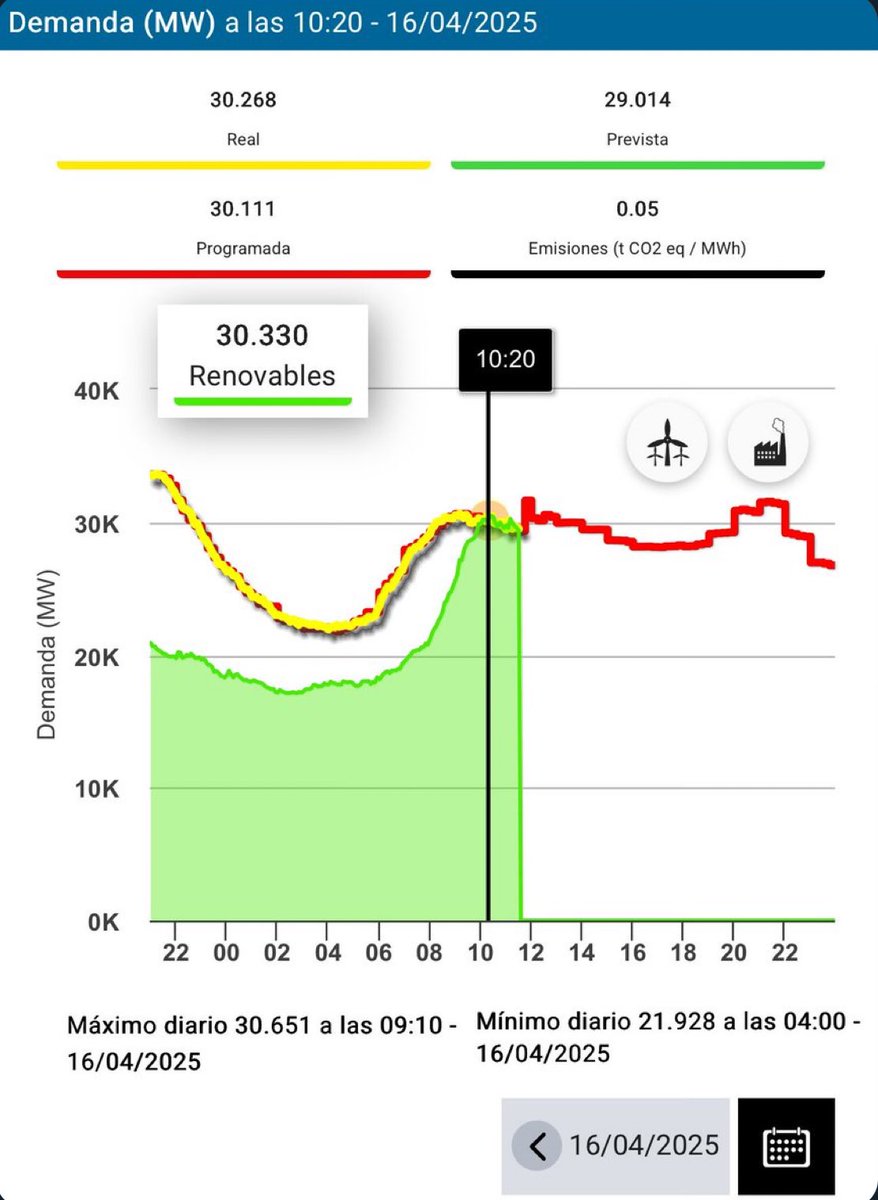 Hoy España ha dado un salto cualitativo en energías renovables, siendo el primer gran país de 50 millones d e habitantes que cubre toda la demanda con 100% energía limpia y renovable.