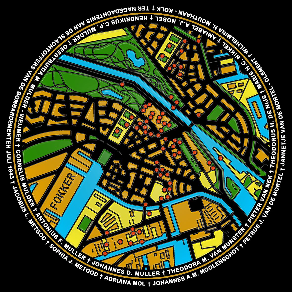 Бомбили несколько раза, но как-то не вышло. Погибло больше 200 жителей Амстердама. А завод почти не получил повреждений. В память об этом, где падали бомбы, теперь люки.