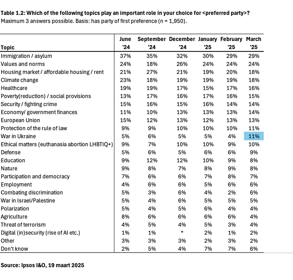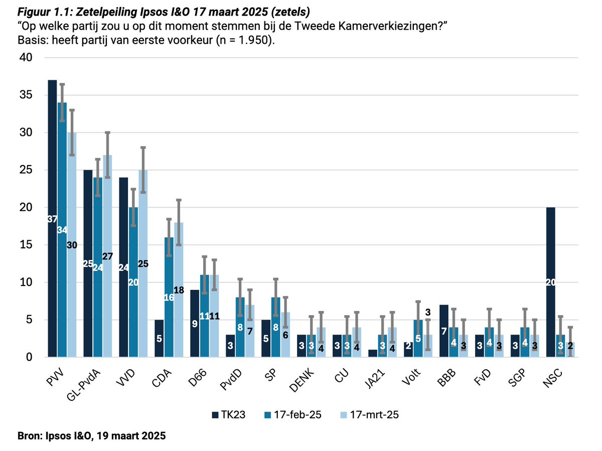 Опрос нидерландских избирателей от Ipsos I&O в марте 2025 года. Прошлый я снова пропустил :)