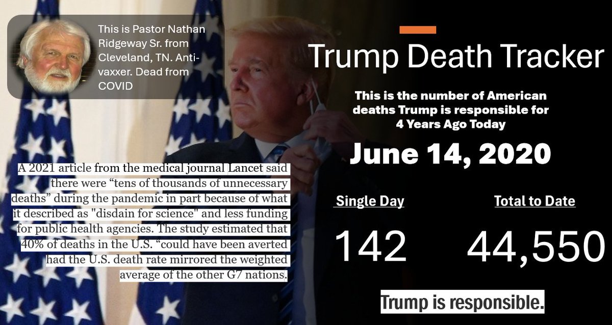Part II: The rest leading up to today. Expert studies have shown that Trump is responsible for 40% of all U.S. Covid deaths. These people can no longer vote blue because they're 6 feet under, on November 5th we vote for them. RIP #USDemocracy #VoteBlueAsifYourLivesDependonit