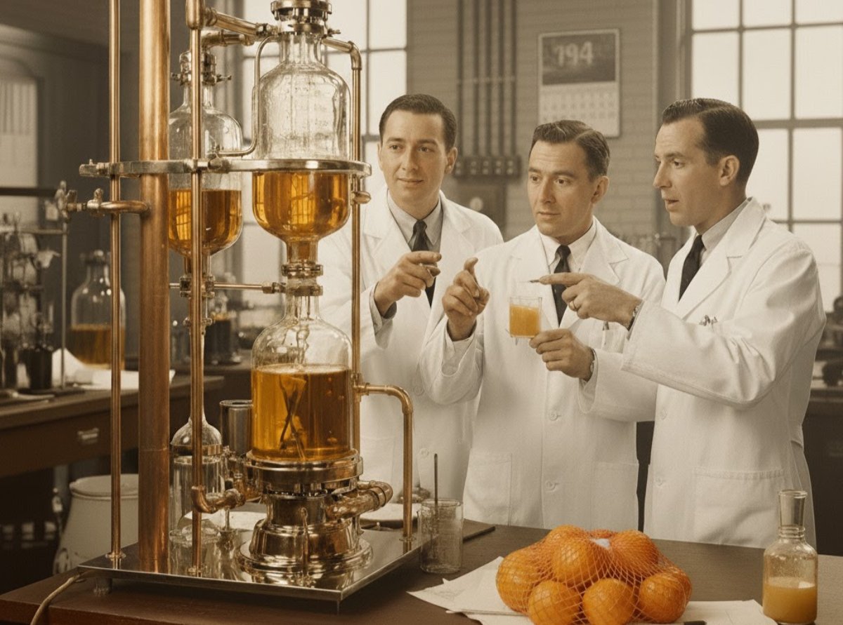 En 1943, un grupo de ingenieros trabajaba evaporando plasma para el ejército, cuando aplicaron el mismo sistema a zumo de naranja recién exprimido. Sin saberlo, acababan de crear el primer zumo concentrado de la historia, que daría origen a Minute Maid. Tira del hilo 🧵👇🏽👇🏽👇🏽