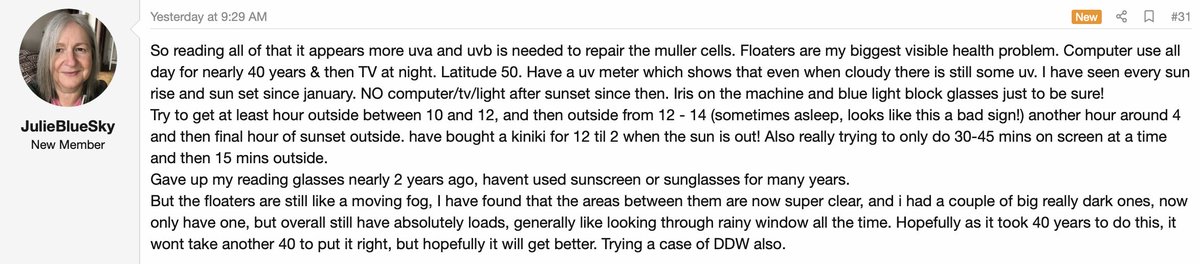 Flicker effect and polarization from modern light sources are the key to anterior chamber redox repair. Few of the people in this thread ever read the details of all the blogs and the advice I gave over the last 20 years. These are the main triggers for visual obscurations, migraines and aura, acting through retinal and cortical hyperexcitability, as seen in light biology studies I've linked on the blogs.