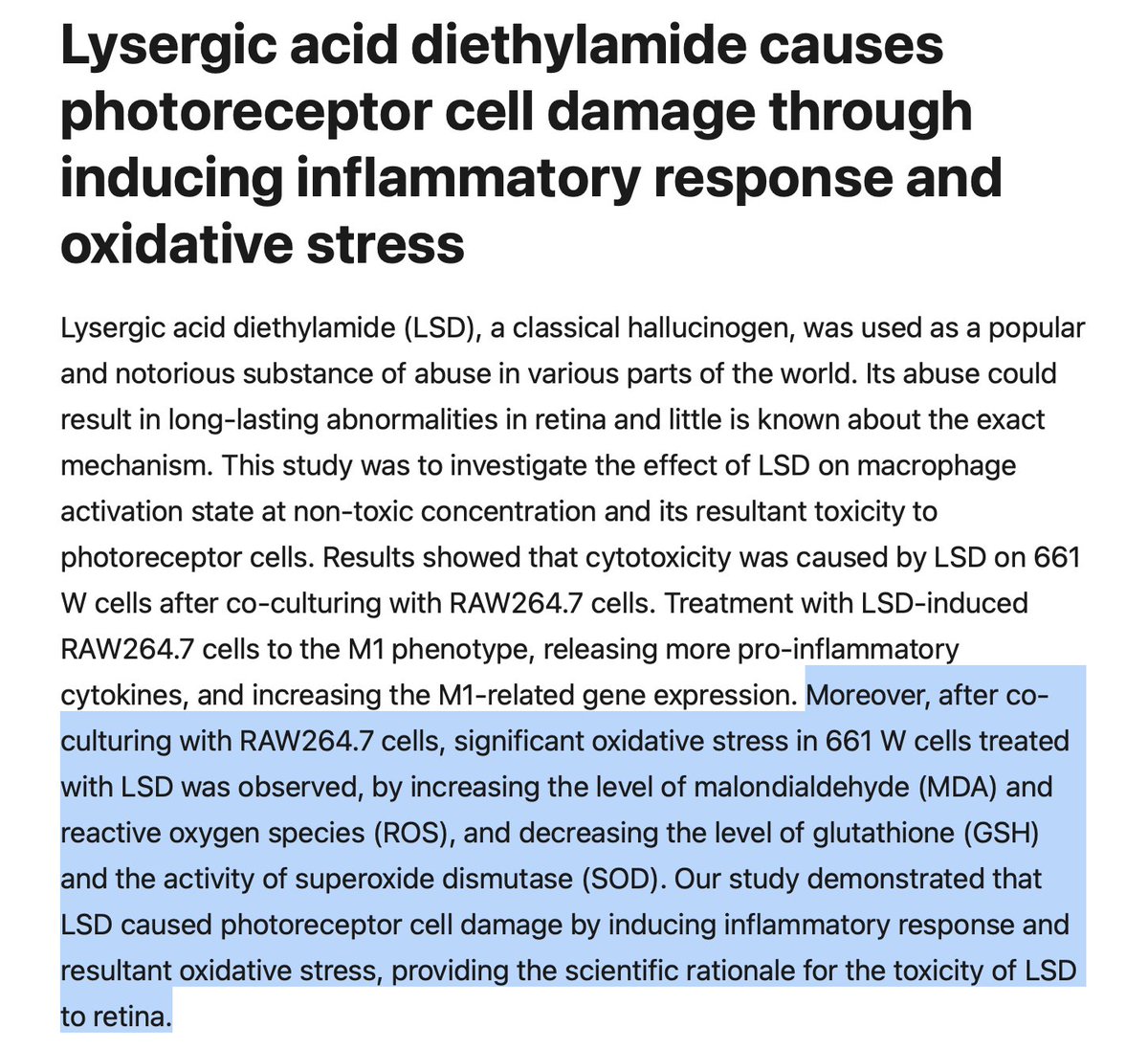 1. To address how a dose of LSD, known for its effects on absorption and emission spectra and the release of massive ultraweak photon emission (UPE), impacts myelin, we need to consider the biophysics of LSD’s interaction with neural tissues, the role of myelin in neuronal function, and the potential effects of UPE on cellular structures. This response will integrate insights from neurobiology, biophysics, and photobiology, while aligning with the photo-bioelectronic framework of my decentralized medicine thesis. So if you have not read my work or the book below, you'll be shit out of luck. But I have the goods. Given the complexity of LSD’s effects and the link of UPE’s impact on myelin biology decentralized medicine can explain this picture of LSD retinal toxicity.