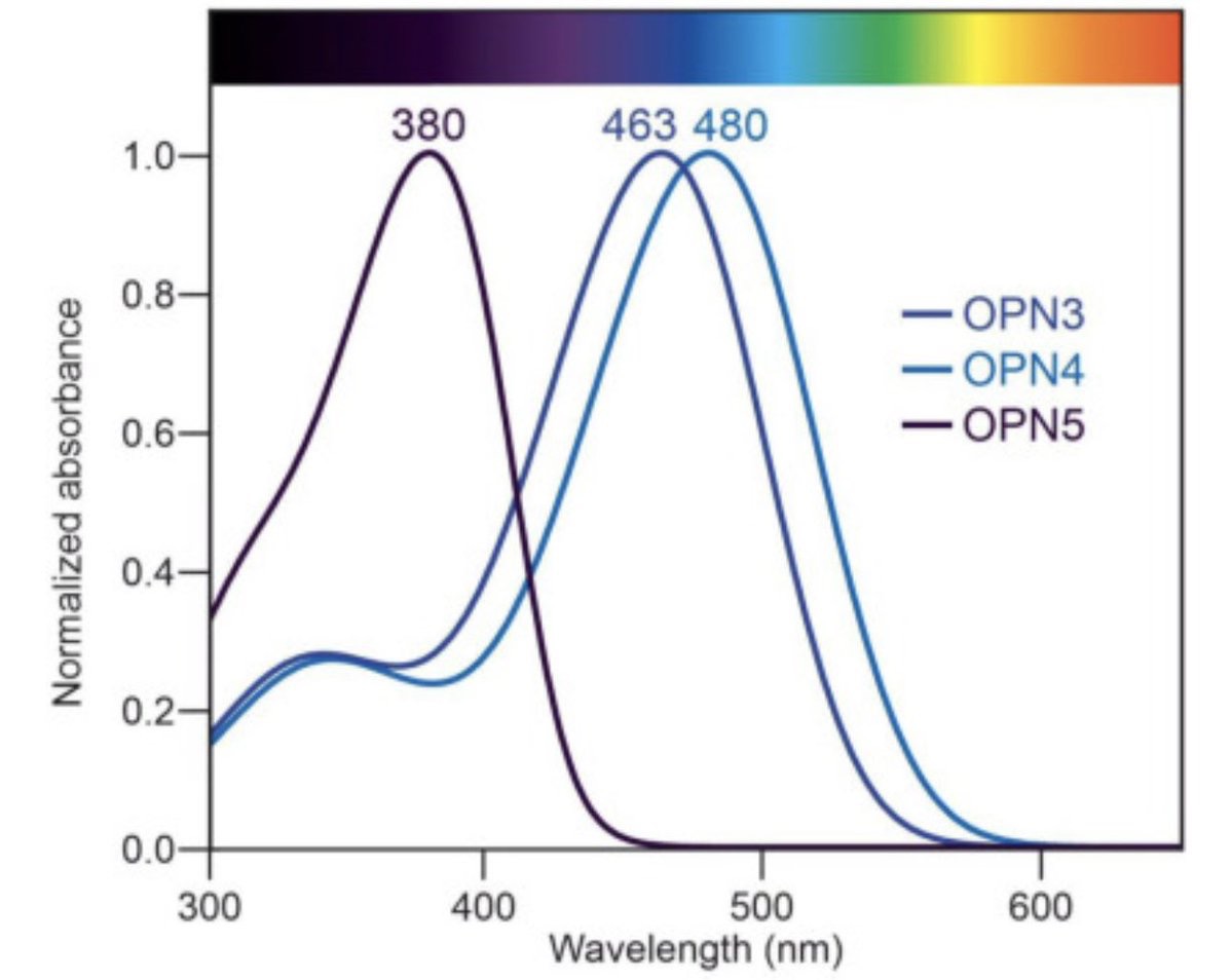 This tells you cone vision needs lowered oxygen tensions because the light they work with is less powered than the blue light that melanopsin works with.