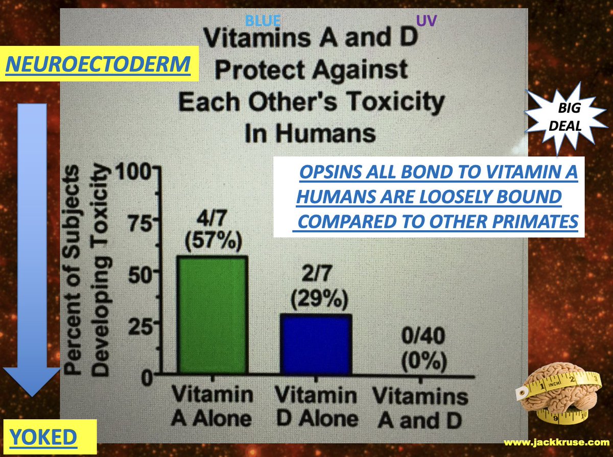 This is why unsupplemented Vitamin D levels are great proxies for defects in Vitamin A cycles in the brain and retina. This makes your unsupplemented Vitamin D3 level a great proxy for what is really going on in your skin and eyes mitochondrial matrix. The next part of the puzzle is not well known.