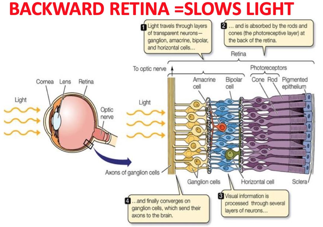 For those of you who don't know the retina appears to build inside out. This has confused biologists for ages because none of them understand light well. It is backward because mitochondrial use of oxygen is a GOE event life had to deal with. She used our light absorbing biomolecules to solve the GOE riddle. The same idea is true in the skin's physiology.