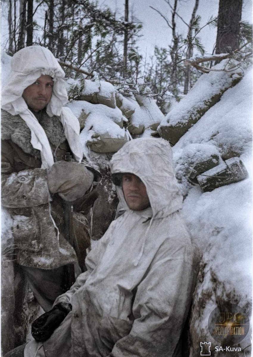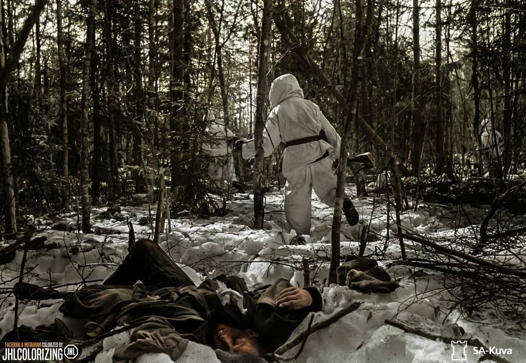 He emptied up magazine after another, the JR 61 soldiers crawled in the snow passing on more SMG magazines from the rear, giving them to Kärkkäinen who was refilling magazines for Pylkäs.
