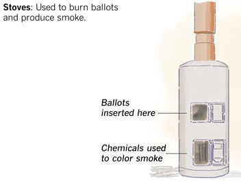 5. Up to four ballots daily — two morning, two afternoon. After each, smoke signals the result:
