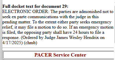 WHOO BOY: In an order filed last night, Judge James Hendrix--the judge in Texas presiding over latest Alien Enemies Act case which prompted unprecedented intervention by SCOTUS--accused ACLU atty of violating federal code of conduct rules by calling his chambers AFTER Hendrix denied the 1st emergency temp restraining order on April 17.