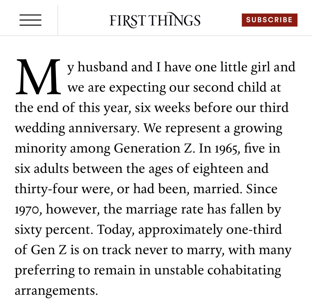 As I wrote for @firstthingsmag last year: The U.S. marriage rate has dropped an astounding 60% since 1970.