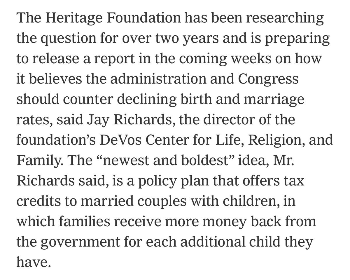 This week, NYT published a long report highlighting how the Trump administration is building an ambitious plan to boost marriage and birthrates. That includes many of the ideas we've been working on at @Heritage.