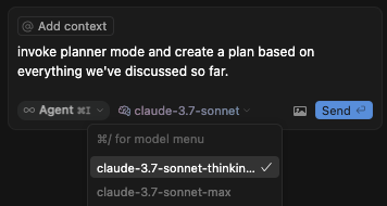 When you ask the agent to use Planner mode, it becomes a project manager. It writes down the goals and plan and tracks the status of every task.