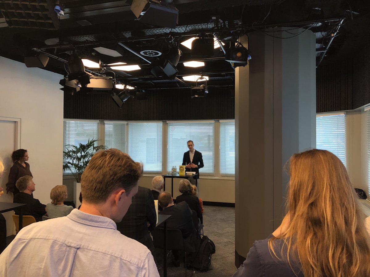 Er komen nu allemaal mensen binnen. Het gaat beginnen. Wigt wilde supergraag naar uitgeverij Brooklyn. Dat is gelukt. De uitgever spreekt ons toe.
