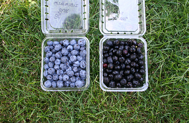 Here's how much difference there can be in blueberry color, due to the bloom.