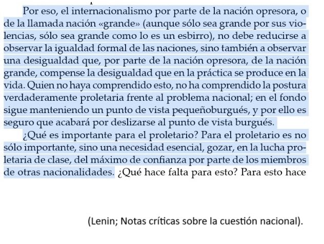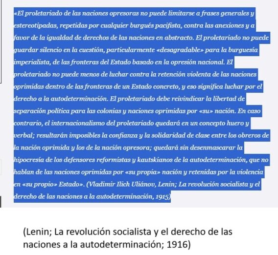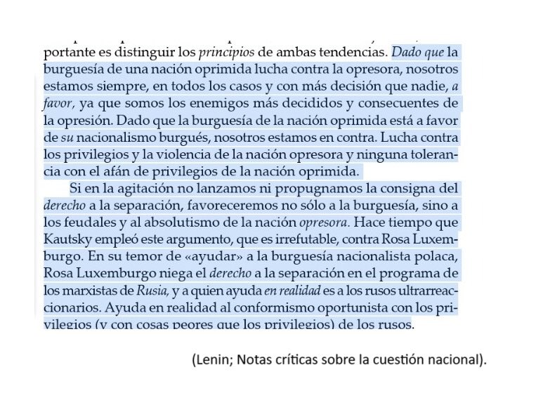 PD: Lenin defendió el derecho a la autodeterminación de las naciones oprimidas como paso previo a la lucha socialista.+
