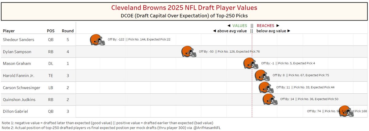 the Browns ranked #22 in this draft value metric thru the third round... but they finished much higher thanks to Sanders and Sampson in the late rounds