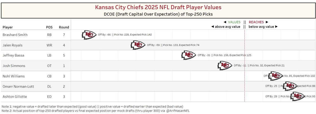 which is why, thru 3 rounds, the Chiefs ranked a below average #18 in draft value